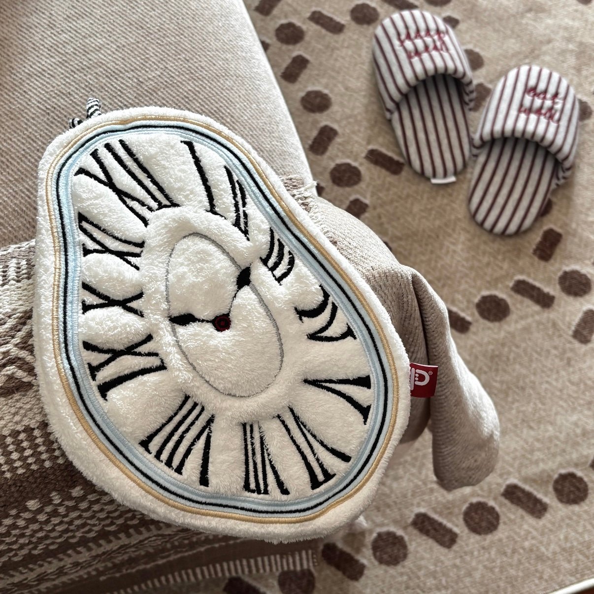 🪡 立体的な刺繍で、クラシックな時計デザインを再現。